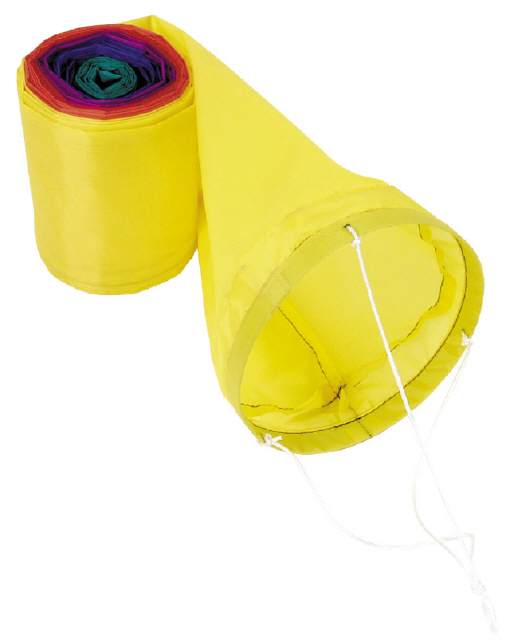 Robuster Schlauchschwanz in 10 Meter Länge für den Drachen- und Leinenschmuck. Der Knoten am Ende des Schlauchschwanzes lässt sich öffnen. Dadurch kann Sand und lose Verschmutzungen sehr leicht entfernt werden. Erhältlich im Regenbogen-Design. Mit Metall-Clip zur einfachen Befestigung am Drachen oder an der Leine.